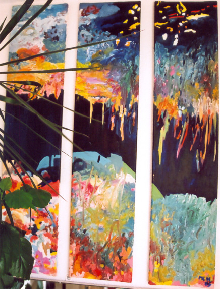 Olie på lærred. 3 Lærreder á 22 x 100 cm.